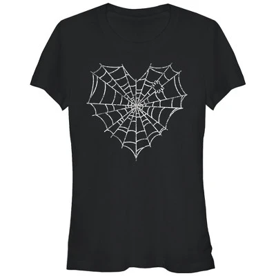 Your heart will be captured by the Lost Gods Halloween Heart Spider Web Black T-Shirt. This fitted black shirt features a distressed white heart-shaped spider web, complete with a furry little spider hiding in the threads.