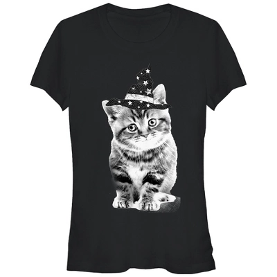 Every witch needs a cat to help with spooky spells on the Lost Gods Halloween Witch Kitten Black T-Shirt. This funny fitted black shirt features a kitten wearing a pointy witch’s hat and is the perfect style for any Halloween fun.