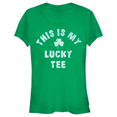 - Featuring the words “This Is My Lucky Tee” with a white shamrock in the middle!