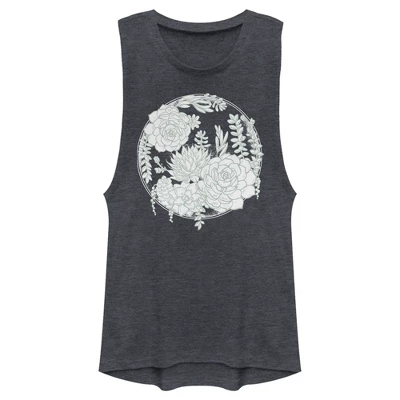 - Strut your stuff with this stylish new everyday Juniors’ Festival Muscle Tank Top that is perfect for every occasion! Featuring a white graphic of the different types of succulents.