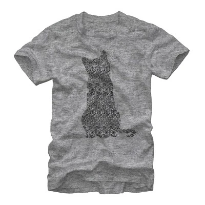 Trade in your fierce felines for a softer look with the Lost Gods Floral Print Cat Heather Gray T-Shirt. Black floral print shapes the form of a cat sitting peacefully on the front of this durable gray shirt.