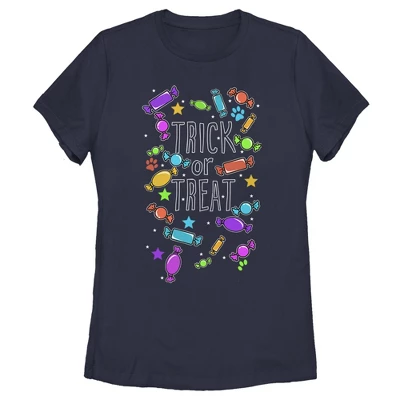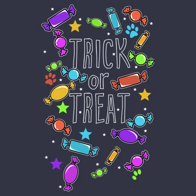 It’s our favorite time of year! Celebrate Halloween with this adorable Women’s Tee featuring the words “Trick or Treat” in bold across the front surrounded by colorful candies, stars, and paw prints.
