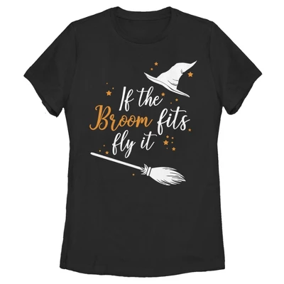 Celebrate your witchy ways this Halloween with this fun Women’s Tee that features a witches’ hat and broom and the phrase “If the Broom Fits Fly it” across the front.