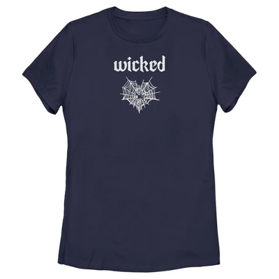 - Strut your stuff with this stylish new Halloween women’s t-shirt that is perfect for the trick-or-treating season! Featuring the word: “Wicked,” in a gothic font lettering with a heart-shaped spider web across the front.